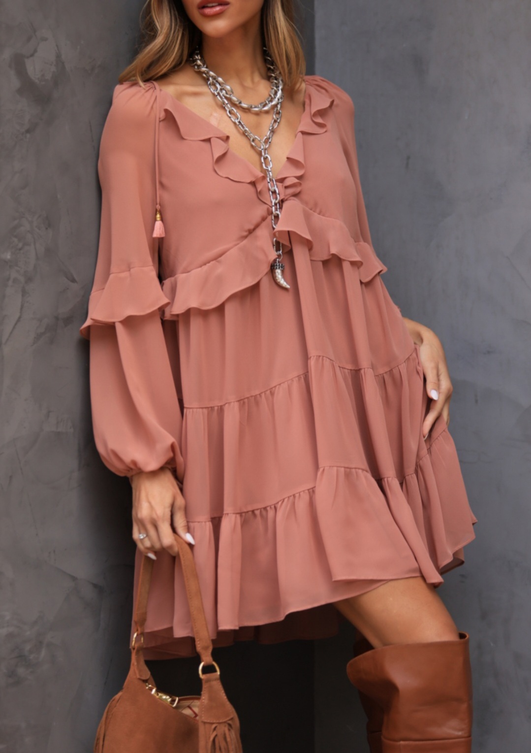 Com caimento fluido e delicado, ele proporciona movimento e elegância a cada passo.